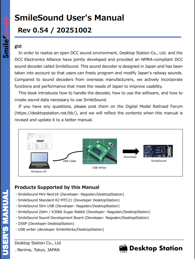 SmileSoundデコーダ用のユーザーズマニュアルを0.54に更新しました。最新のコマンドの反映や、誤記の修正、わかりにくい表現の修正、注意喚起の追加を行っています。