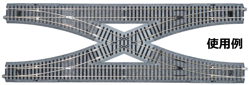 DTrackブランドではなく、フジガヤ2ブランドの2線式製品となります。45°のクロスレールになっており、R490ポイント左右を二個ずつ繋げることで、両渡りポイントを構成することができます。互換性については保証しておりませんが、R490のポイントをきちんとはめ込んで接続できることを確認してから袋詰めしております。