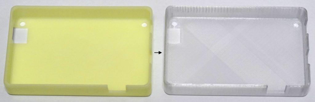 耐久性面では、光造形プリンタからFDMプリンタによるPETGとなったことで、柔軟性・耐久性が向上しております。色も自由に選べますが、間違えて買ったPETG透明フィラメントがちょうどいい具合の色でした。