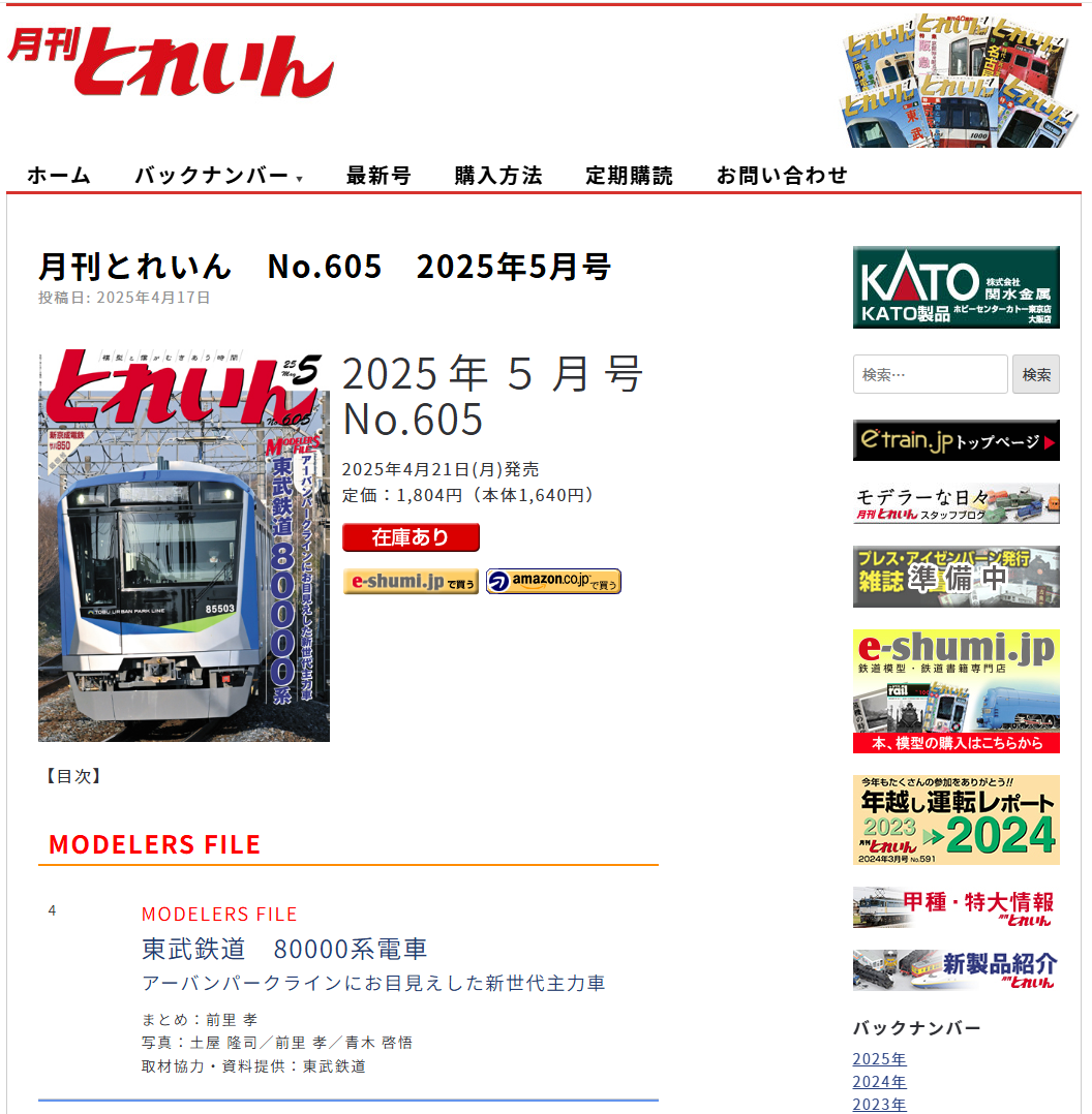 とれいん2025年6月号にSmileSound Slim USBの搭載手順が紹介されています