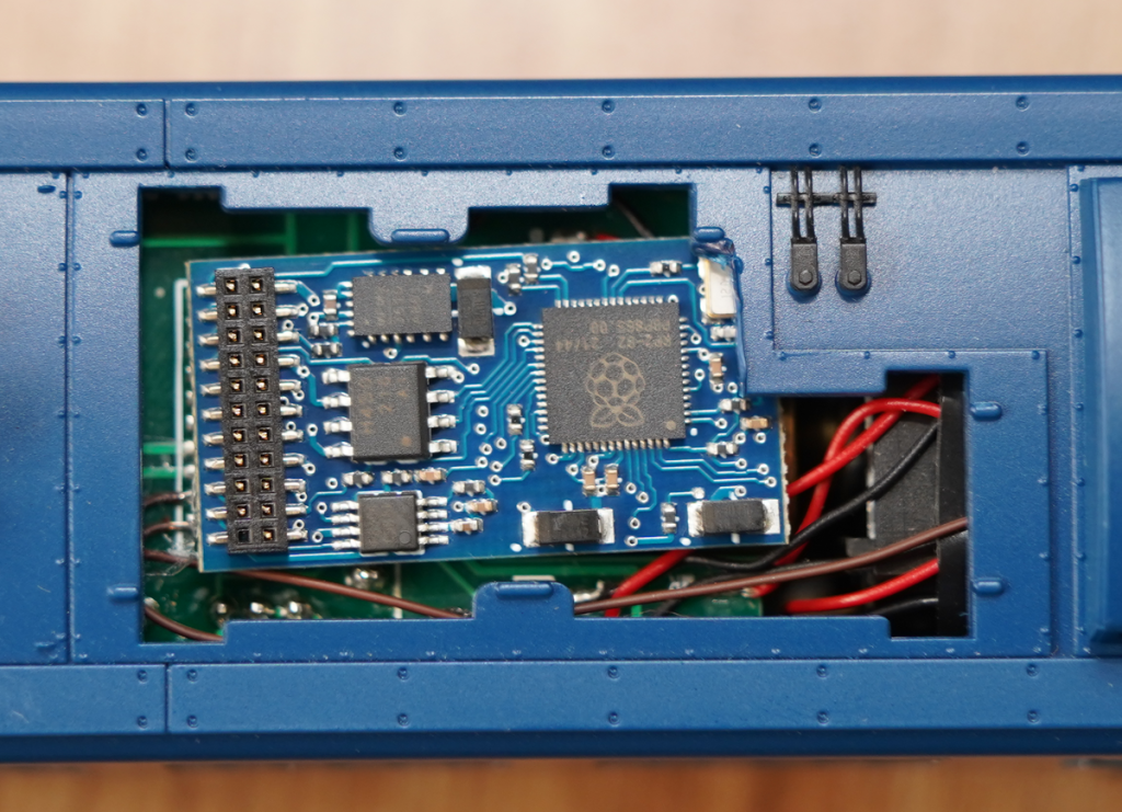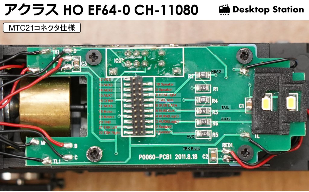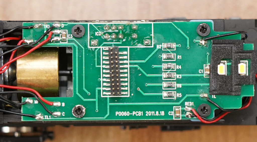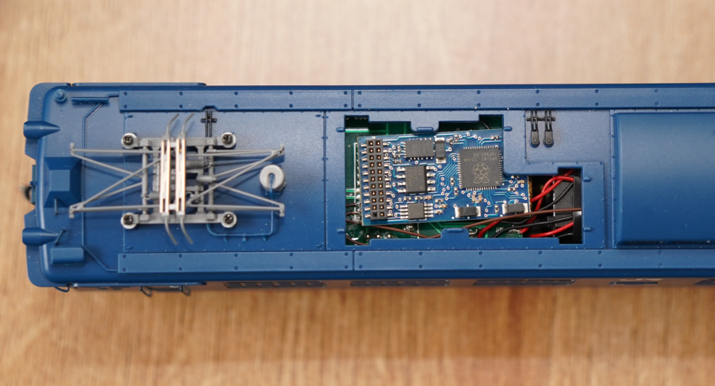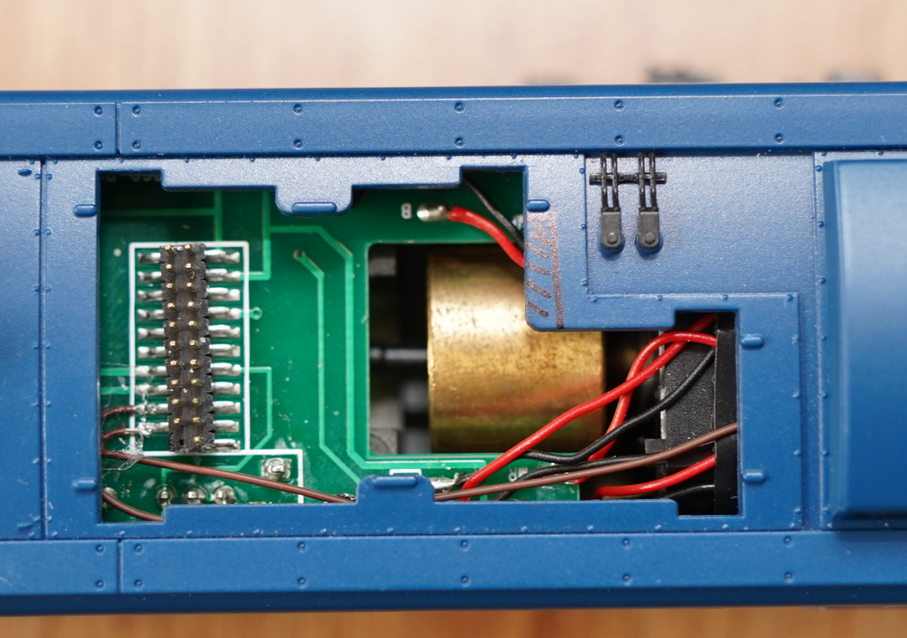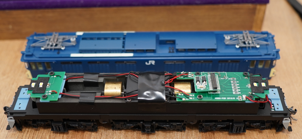 以前に、LokSoundMTC21を入れたことがありますが、LokSoundのデコーダ基板は、裏面に背の高い電子部品(タンタルコンデンサ)があり、フライホイールと接触するため、アクラス EF64には不適合となります。SmileSoundデコーダは、そのような問題はありませんので、安心して使用できます。