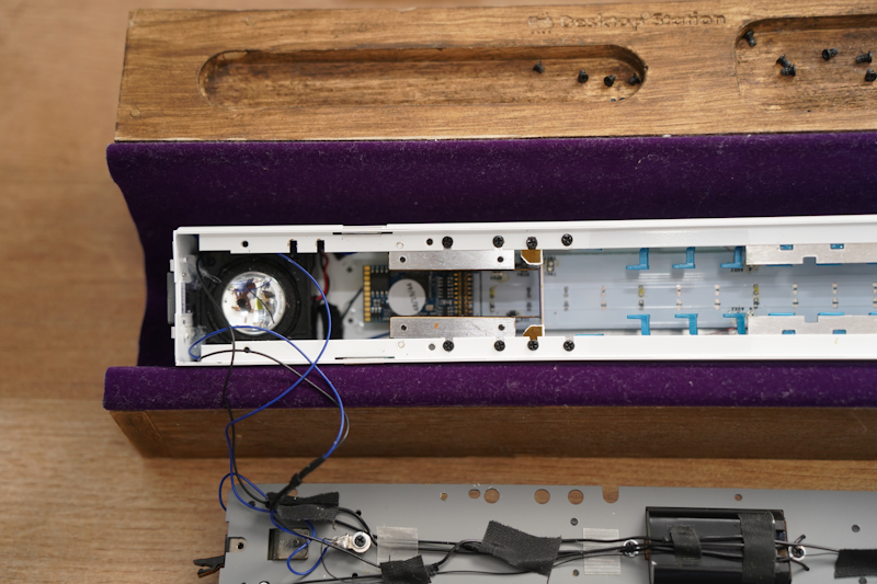 そこで、弊社はSmileSoundの中身を全て把握しているので、無理やり、コンデンサを装着して対処しました。ユーザーの皆様には一切推奨しませんが、弊社が無理やりなんとか使う場合は、たいてい、このような対処を行います。本対策をすると無償保証は適用されなくなりますが、有償交換サービスは受けられますので、ご承知おきください。