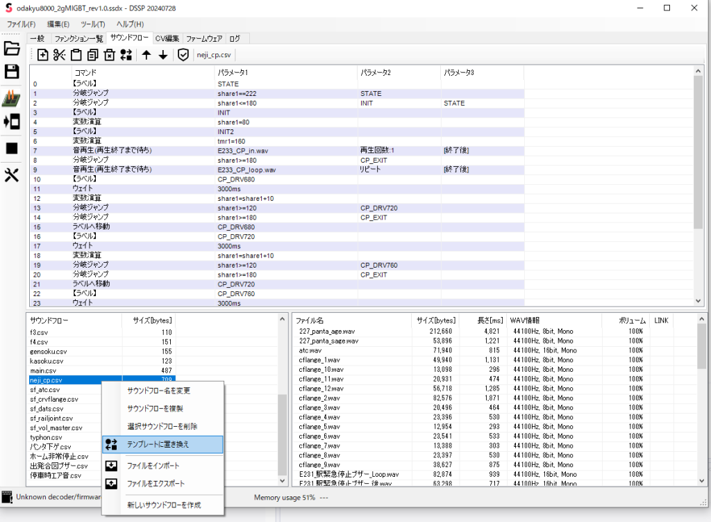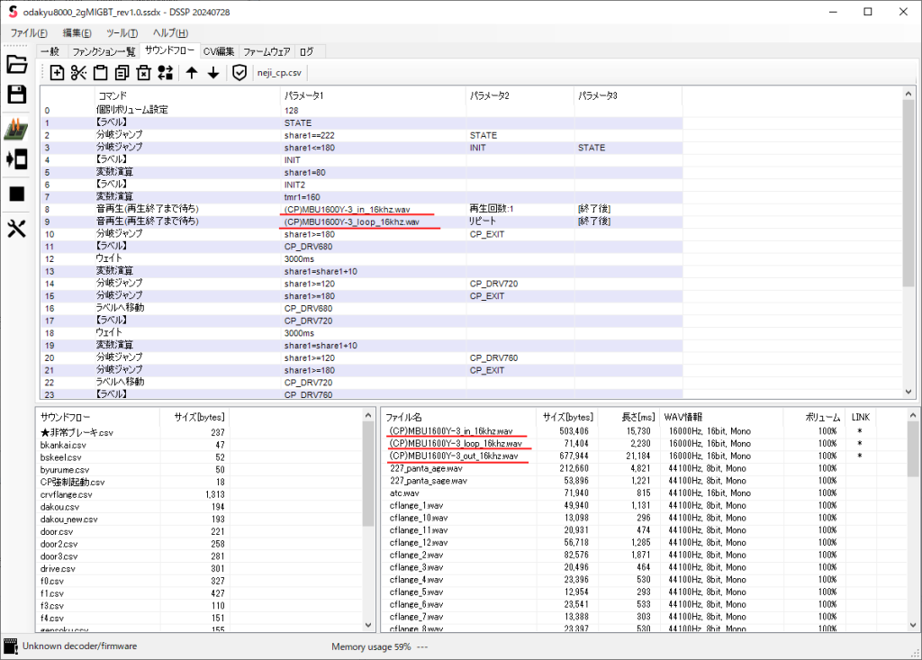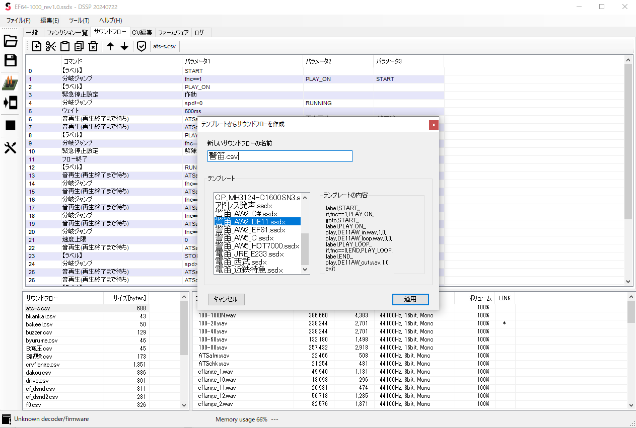 また、サウンドフローをテンプレートで簡単に置き換え・差し替えできる機能を追加します。拡充した場合の例で、AW2やAW5、電笛などをDSSPに標準で含めるようなことを試行します。