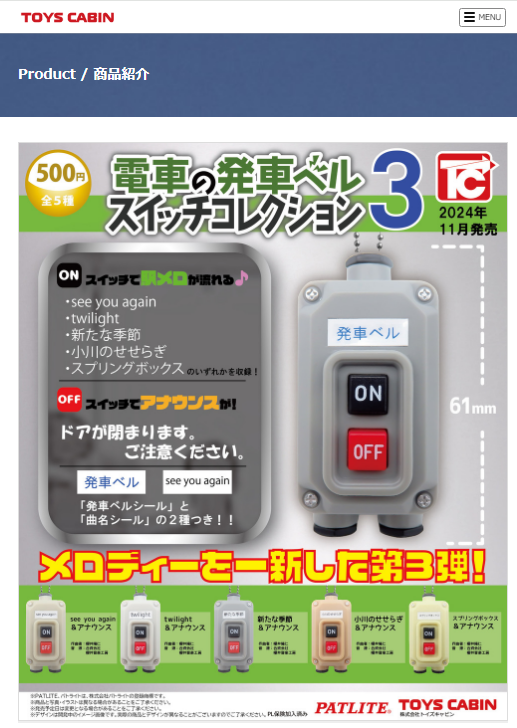 なおギフトは、ガチャガチャで先日発売となった電車の発車ベルスイッチコレクション3となります。デスクトップステーションオンラインストア限定のサービスとなりますので予めご了承ください。