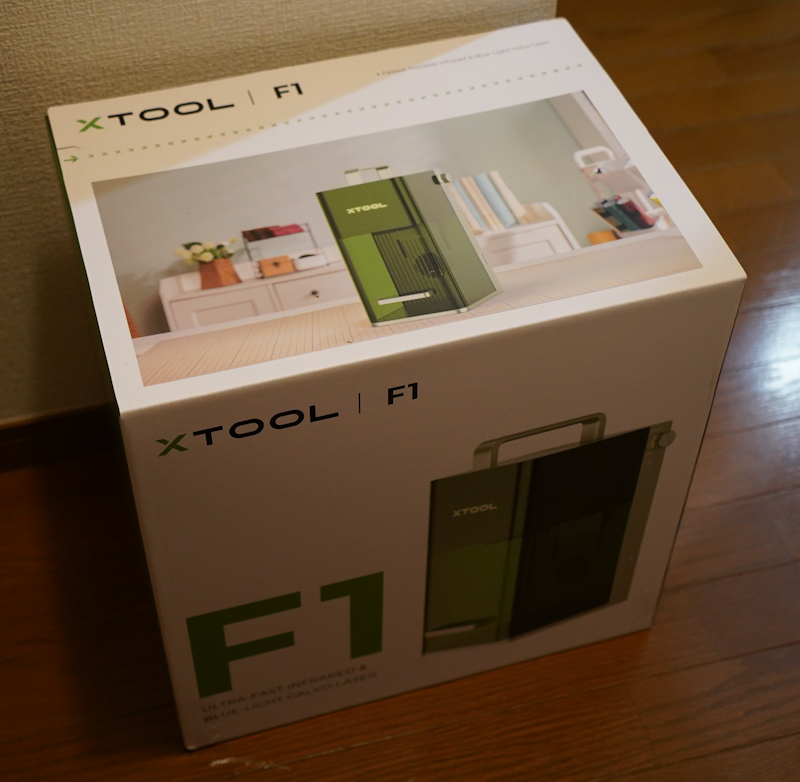 そんなところに、シンセンのSTEAM系電子工作アイテムを開発するMAKEBLOCK社のブランドで、レーザー加工機や彫刻機を扱うxToolから、F1という、小型で使い勝手のよさそうなレーザー彫刻機が登場したので、xToolの日本の直販サイトから購入しました。タイミングが良かったようで、キャンペーン価格が適用されて20万円弱で購入できました。到着日に確認したところ、22万円弱になっていたので、運が良かったのかもしれません。
