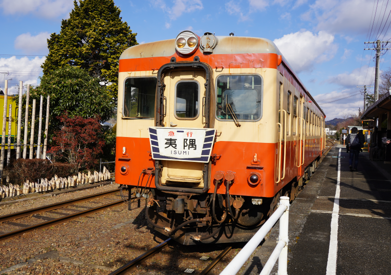 すると、なんと!!キハ52じゃないですか!全く知らなかったので、本当に驚きました。急行となっていますが、大多喜~上総中野間は普通列車運用なので、急行券がなくても乗れます。