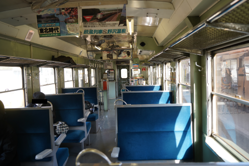 6年前に行ったときは、タラコ色だったので、新鮮でした。車内は以下のような感じで、6年前と変わらずでした。
