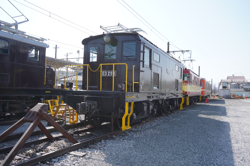 この駅には、以前に貨物輸送で活躍した機関車が静態展示されており、すぐそばまで寄れます。写真撮り放題!