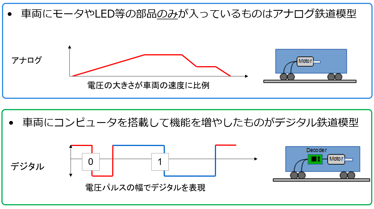 繰り返しになりますが、鉄道模型には、大きくアナログ式とデジタル式の2種類があります。