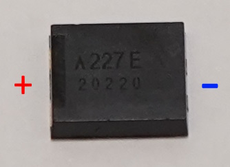 現在、弊社の別売パーツとして販売しているのは、京セラAVXのTCN4227M025R0100Eです。耐圧25Vで容量220uFですが、なんとサイズが7.3×6.1×2.0mmと小型です。