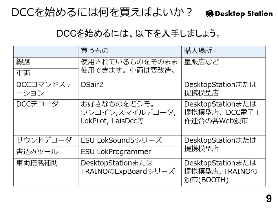 イベントができない状態が続いてますが、DCCの説明資料を少しずつ修正・作成を続けてます。テスト的に、ここに掲載しますので、もしDCCでいろいろと調べている方がいれば参考にしてください。