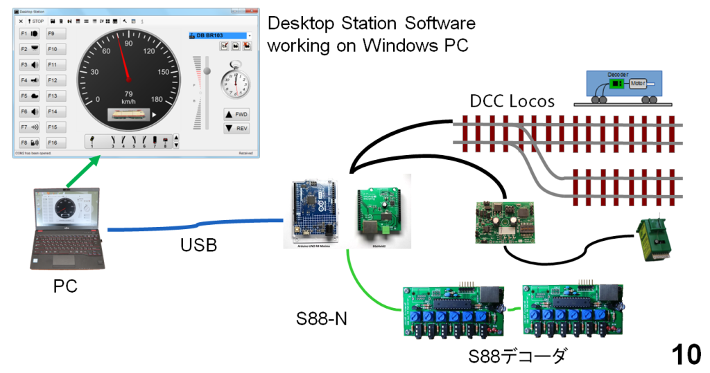 - DesktopStationSoftware(自動運転ソフトウェア)とDSshield2/DSmain(DCCコマンドステーション)
