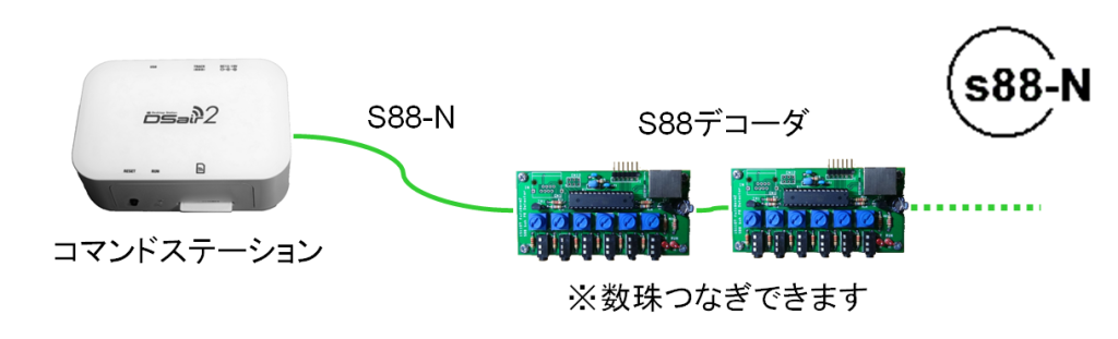 - S88-NでEthernetのケーブルを利用される際には、8芯かつストレートケーブルを必ず選択してください。たまに4芯のケーブルであったり、クロスケーブル等を使って動かない・S88在線検出器やコマンドステーションの故障と勘違いされる方がいらっしゃいます。 ↩︎