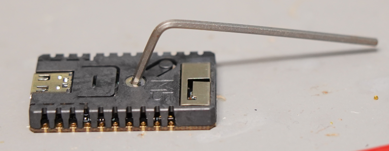 M5Stampのカバーを外すには、六角レンチ(1.5)が必要です。最後にノブを付けるときも六角レンチ(2)が必要なので、ちゃんと用意しておきましょう。