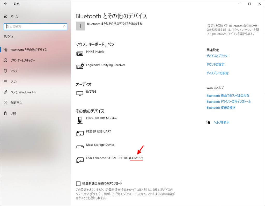 M5 StampにWebで公開されているファームウェアをダウンロードして書かないといけませんが、Windows10やWindows11を使っている場合は、設定を見るのが早いです。