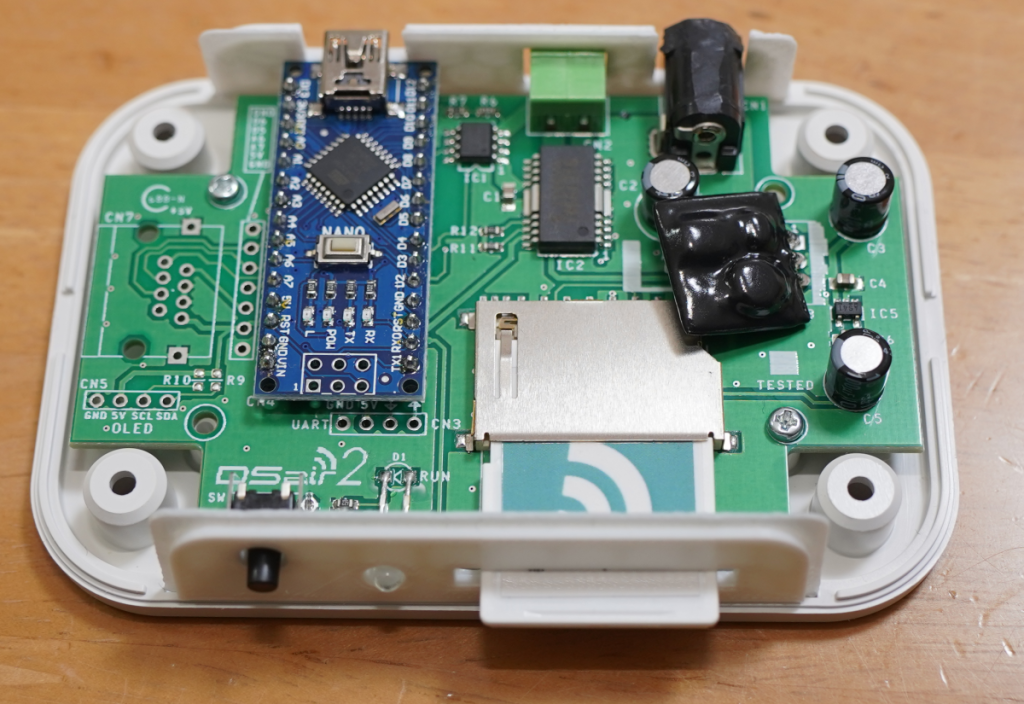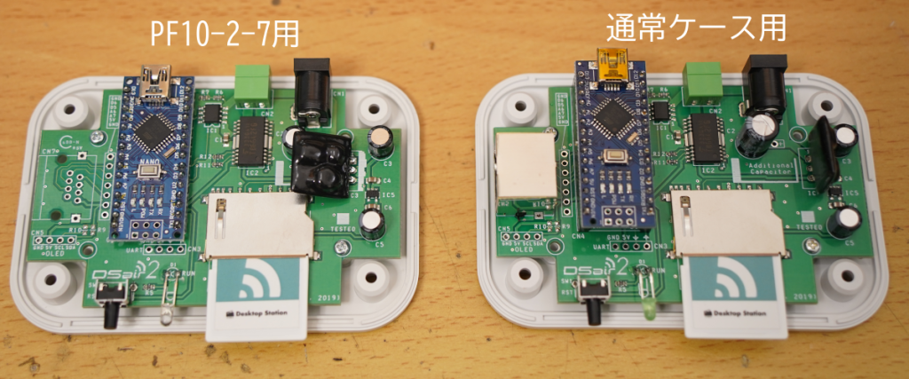 - Arduino Nanoボードの下駄(ピンフレーム)を省略した。