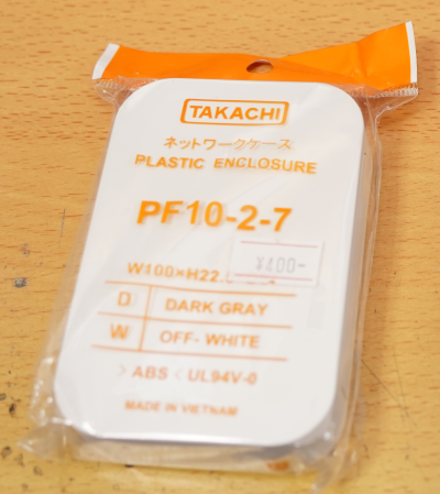 DSair2で使用しているタカチのPF10-4-7というケースは、カスタム加工をタカチに依頼して、印刷と穴あけを行ってます。標準品は、千石電商などで簡単に買うことができます。