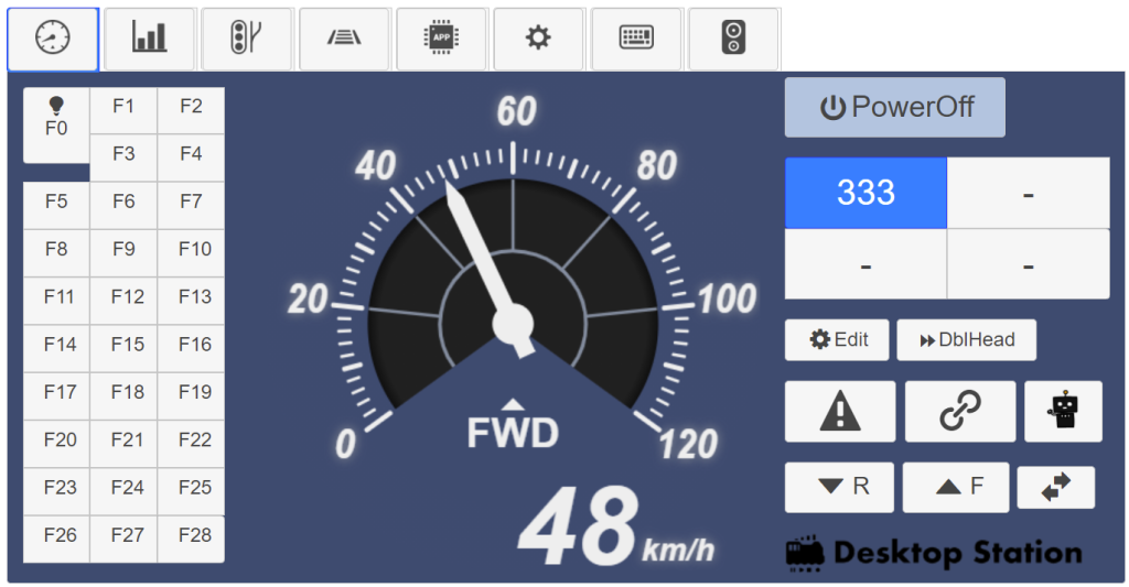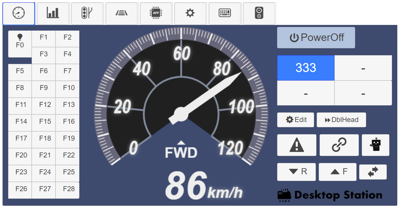 目玉の機能は、メータースキンの変更機能です。フジガヤさんが昨年の5月に公開されたデータをもとに、スキン部分だけを分離して切り替えできるように内部の処理を変更しました。ついでに、ファンクションボタンもF28まで全部表示できるようにしてあります。なお、私はF28までボタンをすべて表示することは、頑張って作ったメータ画面のバランスが崩れるため、美しくないものと考えております(個人の感想です)。