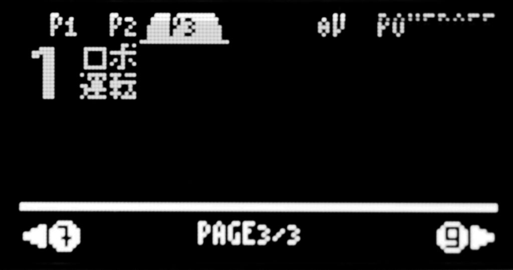 ページ3には、「ロボ運転」の機能が追加されてます。1を押して、ロボット運転士機能を動かします。