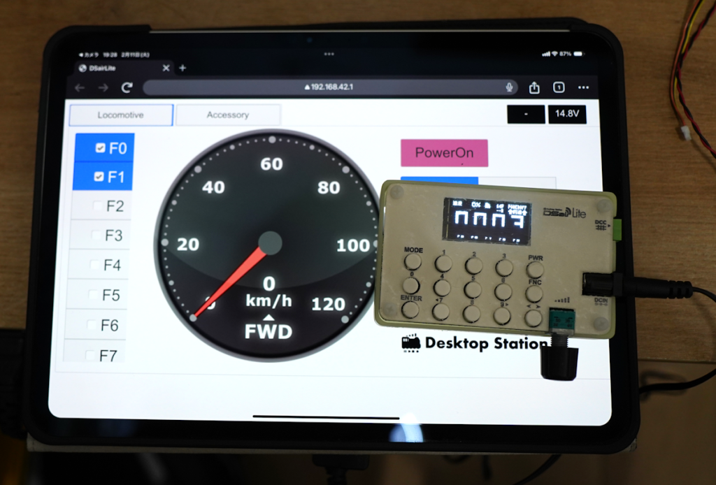 弊社のスタンダードクラスDCCコマンドステーション DSairLiteには、WiFi機能が内蔵されており、スマートフォンやタブレットから、無線で操作が可能です。つまりお手持ちのスマホがスロットルになります。