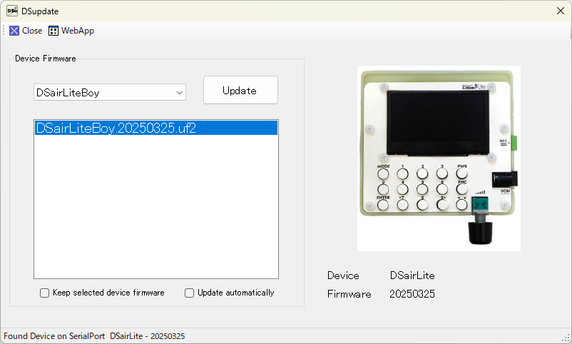 DSairLiteのファームウェア20250325を公開しました。