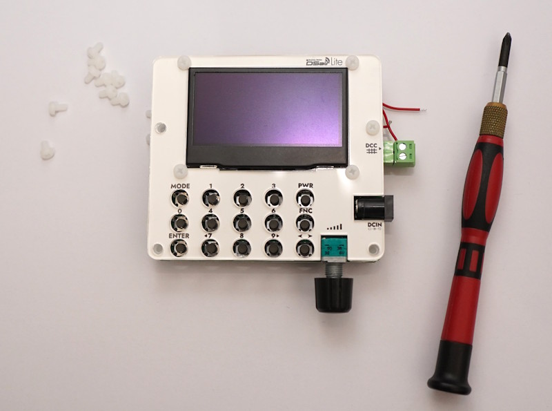 ACアダプタをつなげて動作チェック。画面が正常に表示されれば成功です。ファームウェアはあらかじめ書き込んで出荷してます。アップデートを頻繁に行っていますので、お好みでアップデートを行ってください。