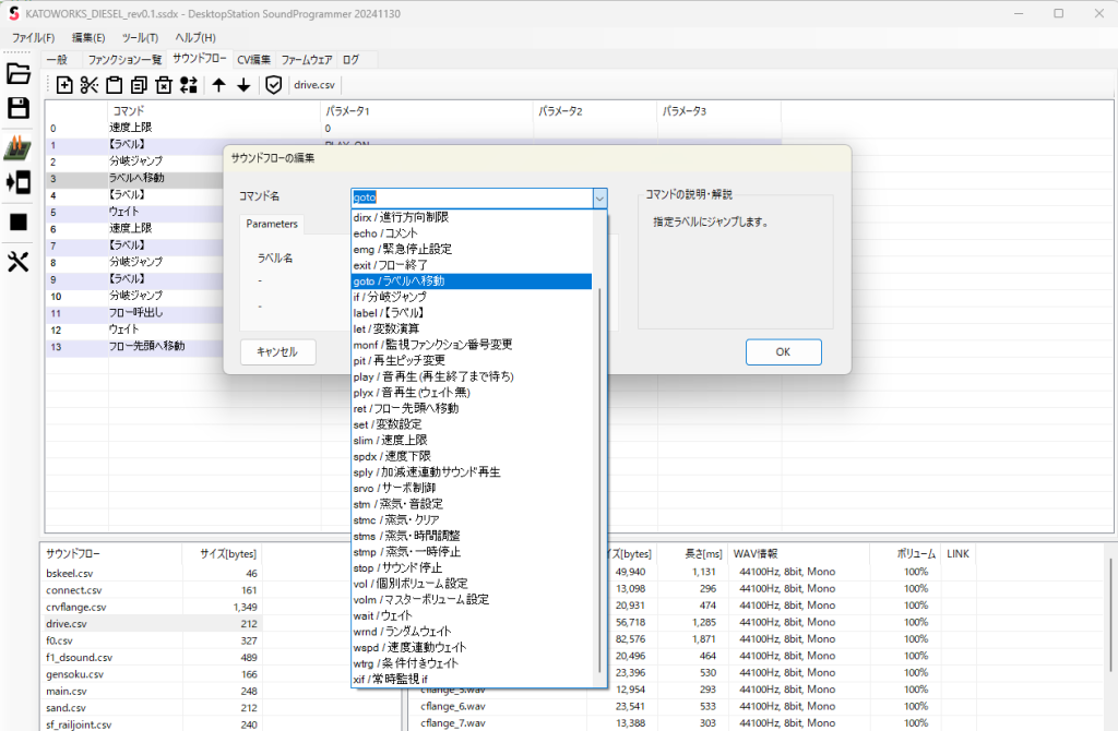 今さらですが気付いた点として、サウンドフローのコマンドを選ぶ作業が初見殺しだったので、次のアップデート版より、以下のようにコマンドをすぐに選べるように改善します。