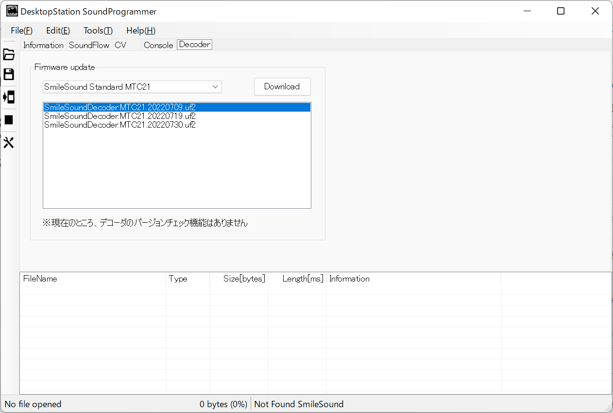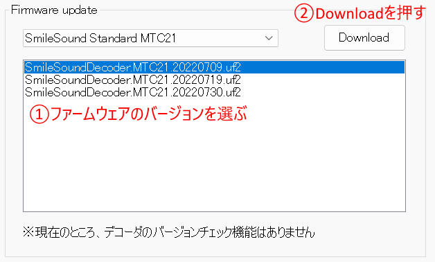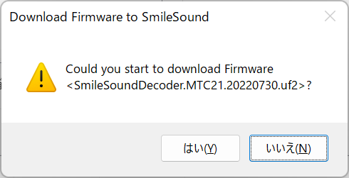 アップデート方法は簡単で、USB WriterにSmileSoundデコーダを装着した状態で、USB Writer本体のボタンを押しながら、PCにケーブルを差し込みます。その後、以下の操作をしてください。