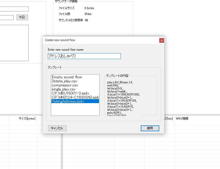 「適用」ボタンを押すと、以下のようにサウンドフローと付随するWAVファイルが追加されます。