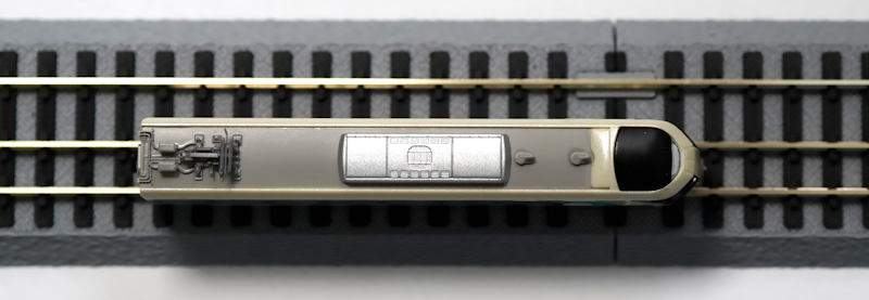 片側の線路にZゲージまたはNゲージの車両をそれぞれ載せて、フィーダ線を繋ぎ変えることで走行させることができます。なお、極性の関係から、同時に3種類の車両を走行することはできません。