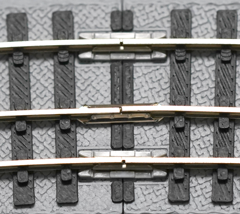 しかし、中線のレールを無視した場合には、日本のHO/16番向けでトップシェアのレールシステムに、個体差や温度・季節等がたまたまあった場合、うまく接続できる場合もあるかもしれません。