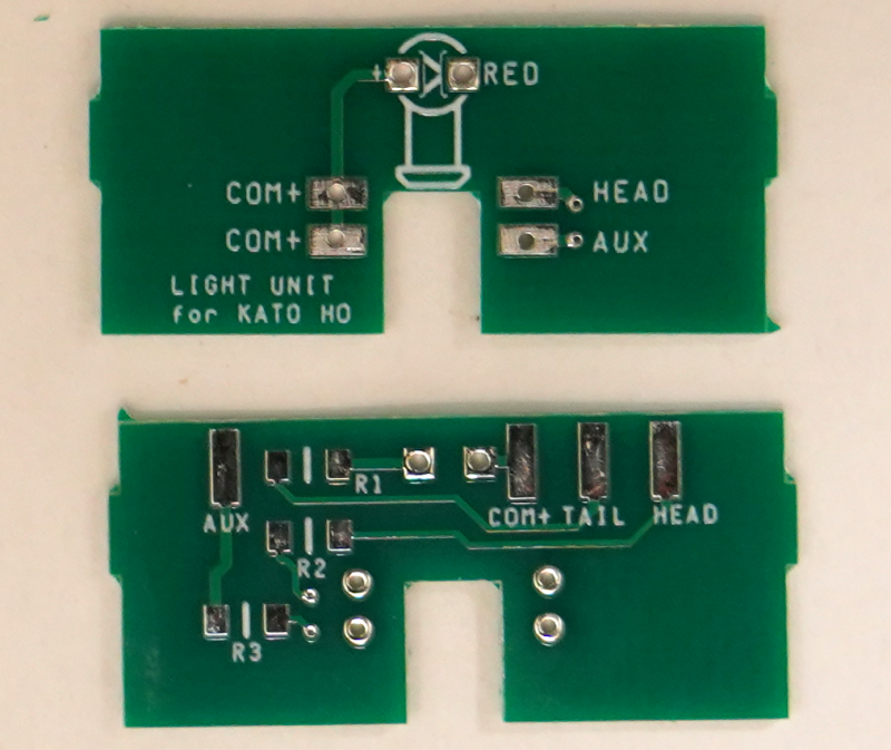KATO HO キハ58をDCC化するときに、ライトユニット基板の改造に失敗して壊してしまったので、基板を作ってみました。