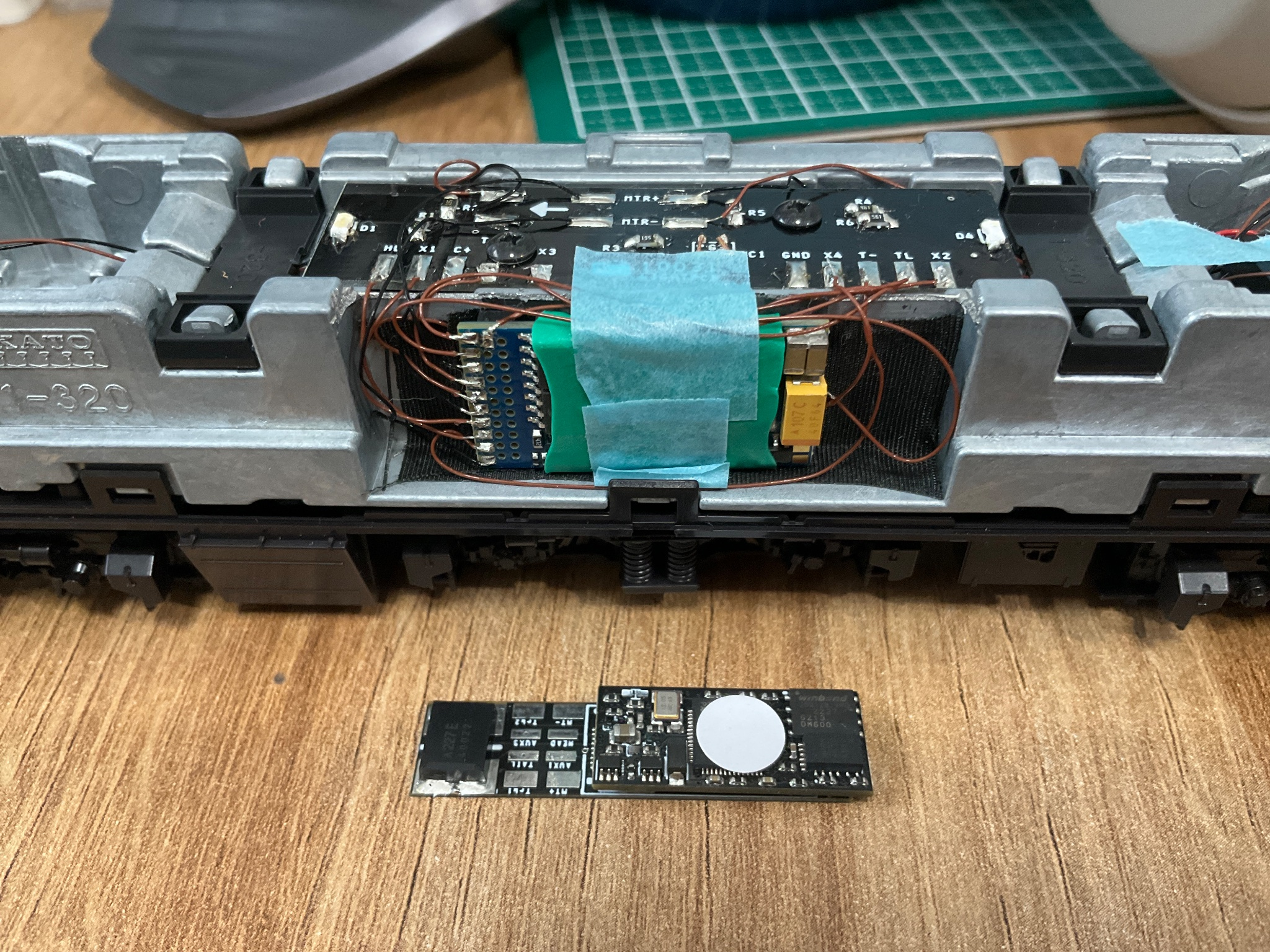 もともと、LokSoundをはんだ付けしていたので、取り外して移植しながら配線をしていきます。