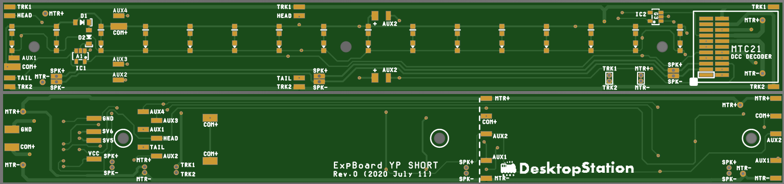 ブラス車両向けのDCCデコーダ配線引き出しボードです。エンドウの室内灯基板と同形状になっており、エンドウの車両への搭載が容易です。またカツミ向けに取り付け穴も設置してあります。