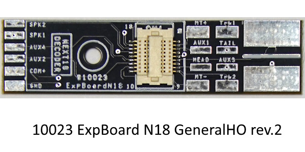 ExpBoard N18 General HOは、HO車両の室内灯部分や床にデコーダを設置できるように設計された基板です。ヘッドライト・テールライト配線、室内灯(AUX)、スピーカーの信号線を容易に、…