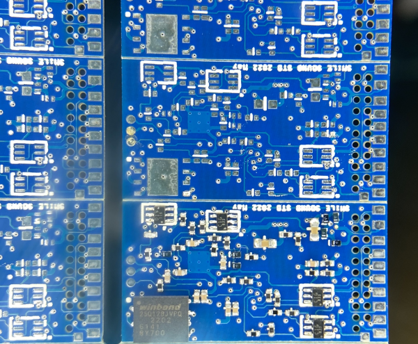 基板製造の委託先である、シンセンのElecrowから、現在試作製造中のSmileSound Standardデコーダ(MTC21)のサンプル写真が送られてきました。