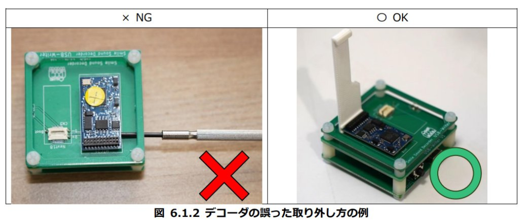 原因は、デコーダ取り外し方法にありました。まずNGとOKの例です。