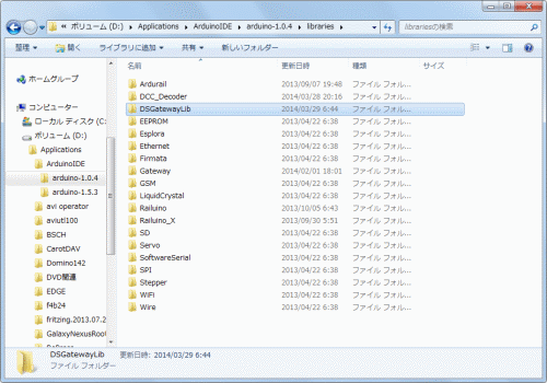 - DSGatewayLibには多くのexamplesが用意されており、Arduino IDEから簡単に開くことが出来ます。最初は、Desktop Stationソフトウェアを使用するために必要なDSGatewayを開いて、Arduino UNOに書き込んでください。なお、ライブラリのインストールが面倒な場合は、DCCMMGateway_r1.ZIPをダウンロードして、頂いてもDSGatewayと同じことが可能です。